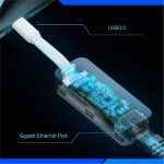 Adaptador de red USB Tipo-C a RJ45 con velocidad Gigabit Ethernet (hasta 1000 Mbps), diseño plegable y compatible con múltiples sistemas operativos.