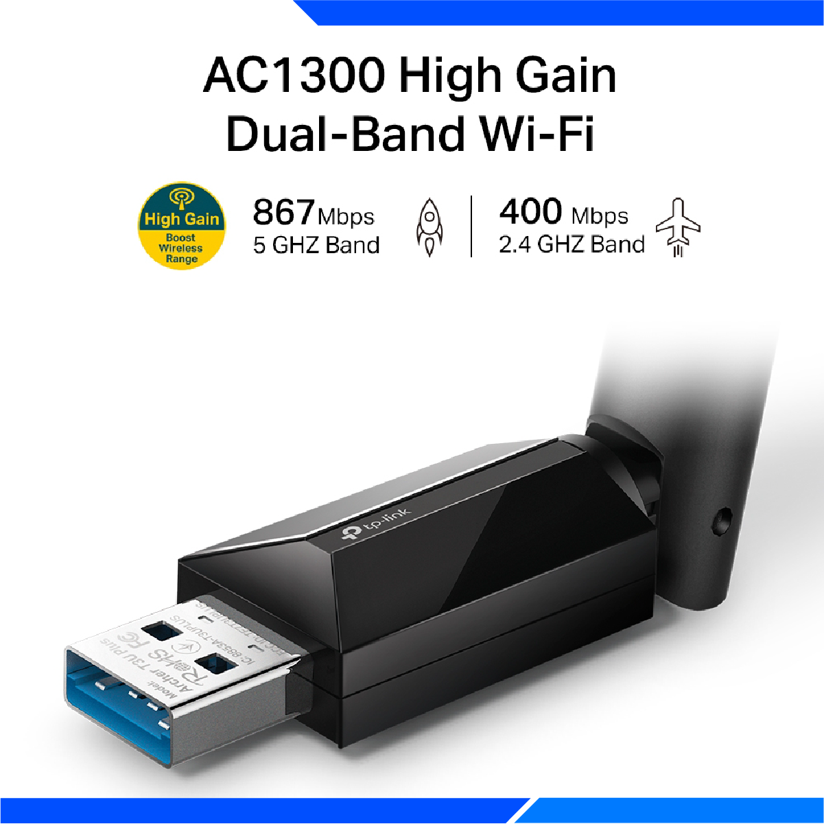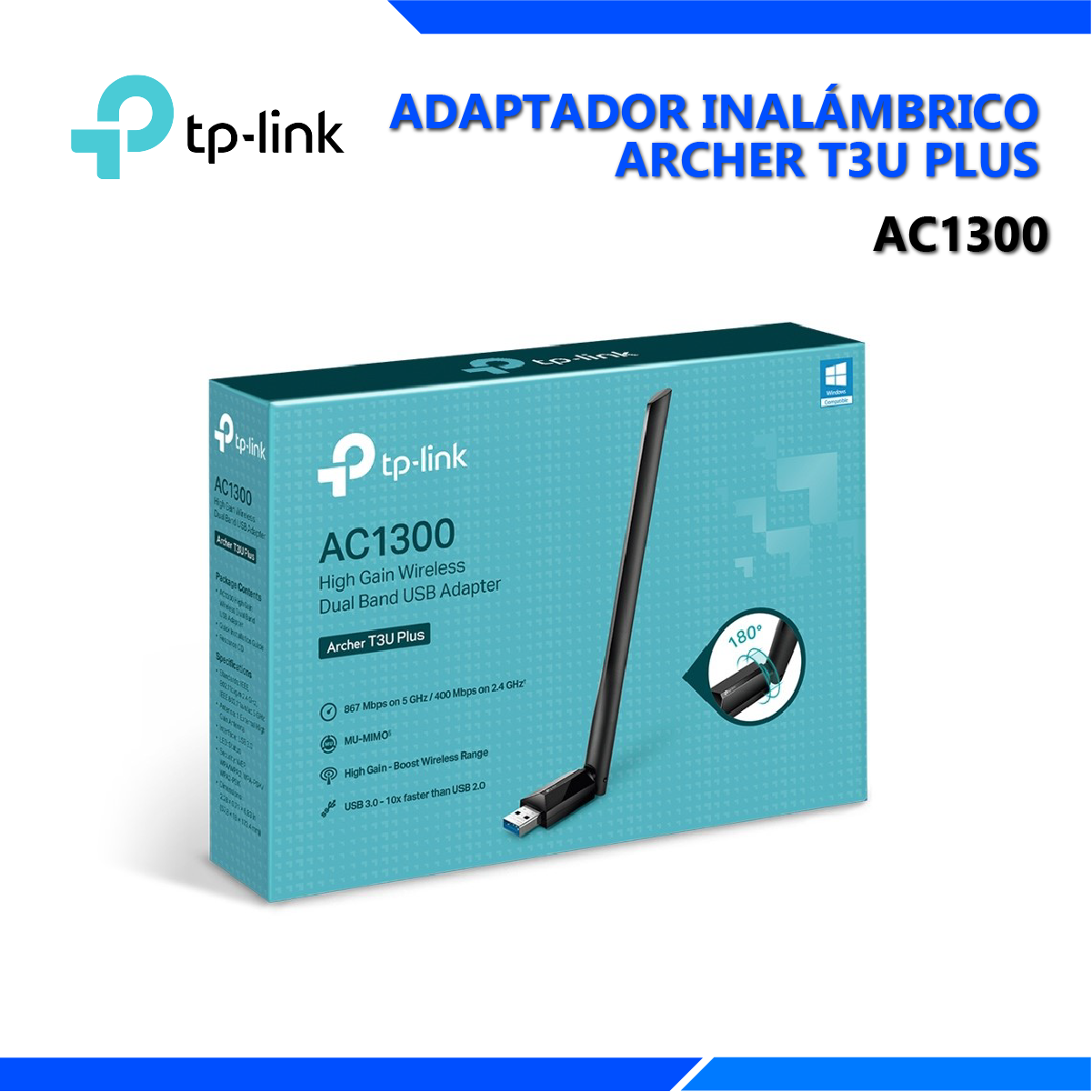 El adaptador USB TP-Link Archer T3U Plus ofrece conectividad inalámbrica de alta velocidad gracias a su tecnología de banda dual AC1300 (867 Mbps en 5 GHz y 400 Mbps en 2.4 GHz). Su diseño incluye dos antenas externas de alta ganancia que garantizan una cobertura más amplia y estable. Compatible con sistemas operativos modernos como Windows y macOS, es ideal para usuarios que buscan mejorar la recepción Wi-Fi en sus dispositivos. Con tecnología MU-MIMO, proporciona mayor rendimiento en redes congestionadas. Es una solución sencilla y eficiente para streaming HD, juegos en línea y descargas rápidas.