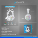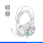 Su construcción premium en color blanco incluye vincha protectora de cuero sintético y almohadillas acolchadas de PU que garantizan comodidad excepcional durante largas sesiones de gaming. La diadema ajustable se adapta perfectamente a cualquier tamaño de cabeza, mientras que las orejeras acolchadas proporcionan aislamiento acústico efectivo.