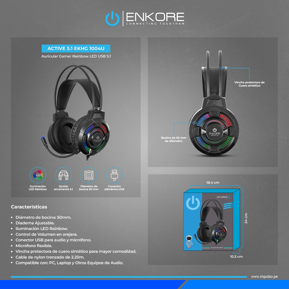 AUDIFONO ENKORE ACTIVE 5.1 EKHG 1004U LED RAINBOW BLACK