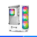 La construcción en color blanco aporta un look gaming moderno y sofisticado que complementa cualquier setup, mientras que el sistema de ventilación RGB garantiza temperaturas óptimas y efectos visuales impresionantes. Su bahía para drive de 3.5″ permite instalar almacenamiento adicional según tus necesidades.