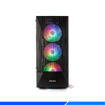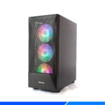 El sistema de refrigeración incluye 4 ventiladores LED ARGB: 3 frontales y 1 posterior de 120mm cada uno, ofreciendo efectos de iluminación avanzados y garantizando un flujo de aire eficiente para mantener temperaturas óptimas. Su construcción robusta en color negro aporta un look gaming profesional.