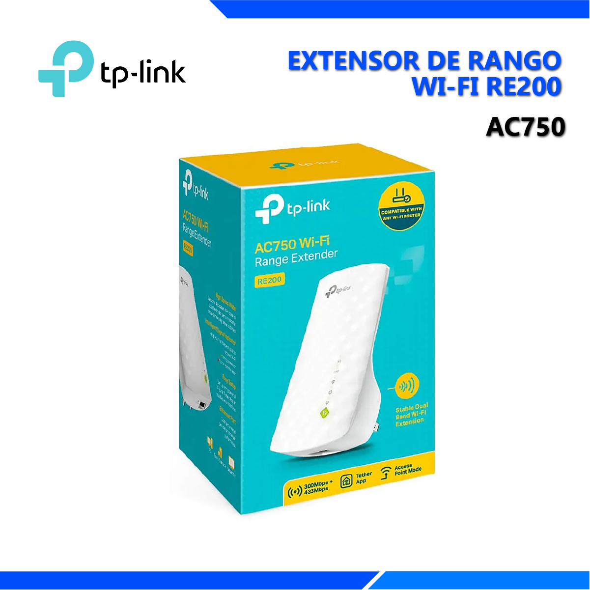 Gracias a su puerto Ethernet, el RE200 permite conectar dispositivos cableados, como televisores inteligentes o consolas de juegos, convirtiéndose en un puente inalámbrico. Sus 3 antenas internas proporcionan una cobertura excepcional, mientras que su compatibilidad con dispositivos 802.11 b/g/n/ac asegura máxima flexibilidad.