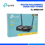 Router TP-Link TL-WR841HP 300M High Power: Diseñado para proporcionar cobertura Wi-Fi mejorada y eliminar zonas muertas gracias a sus antenas de alta potencia y amplificadores. Perfecto para transmisión de video, juegos en línea y VoIP, con velocidades de hasta 300 Mbps.