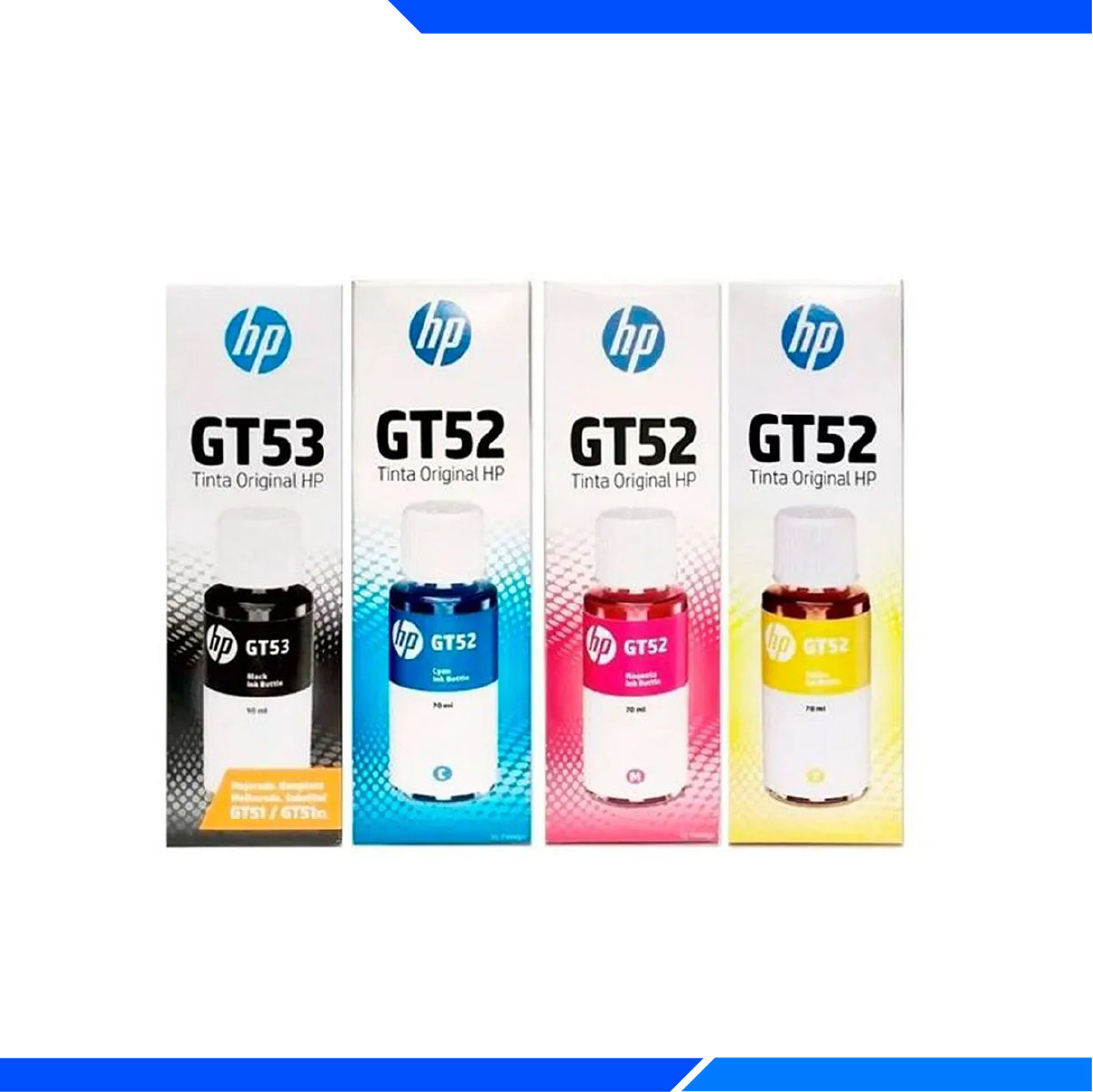 El Pack de Tinta HP Original GT51 y GT52 está diseñado para ofrecer colores vibrantes, durabilidad y rendimiento excepcional en cada impresión. Este conjunto incluye cuatro tintas en los colores negro, cian, amarillo y magenta, con una capacidad de 90 ml para la tinta negra y 70 ml para los demás colores. Compatible con una amplia gama de impresoras HP, este pack permite impresiones de alta calidad, ideales para documentos y fotos.