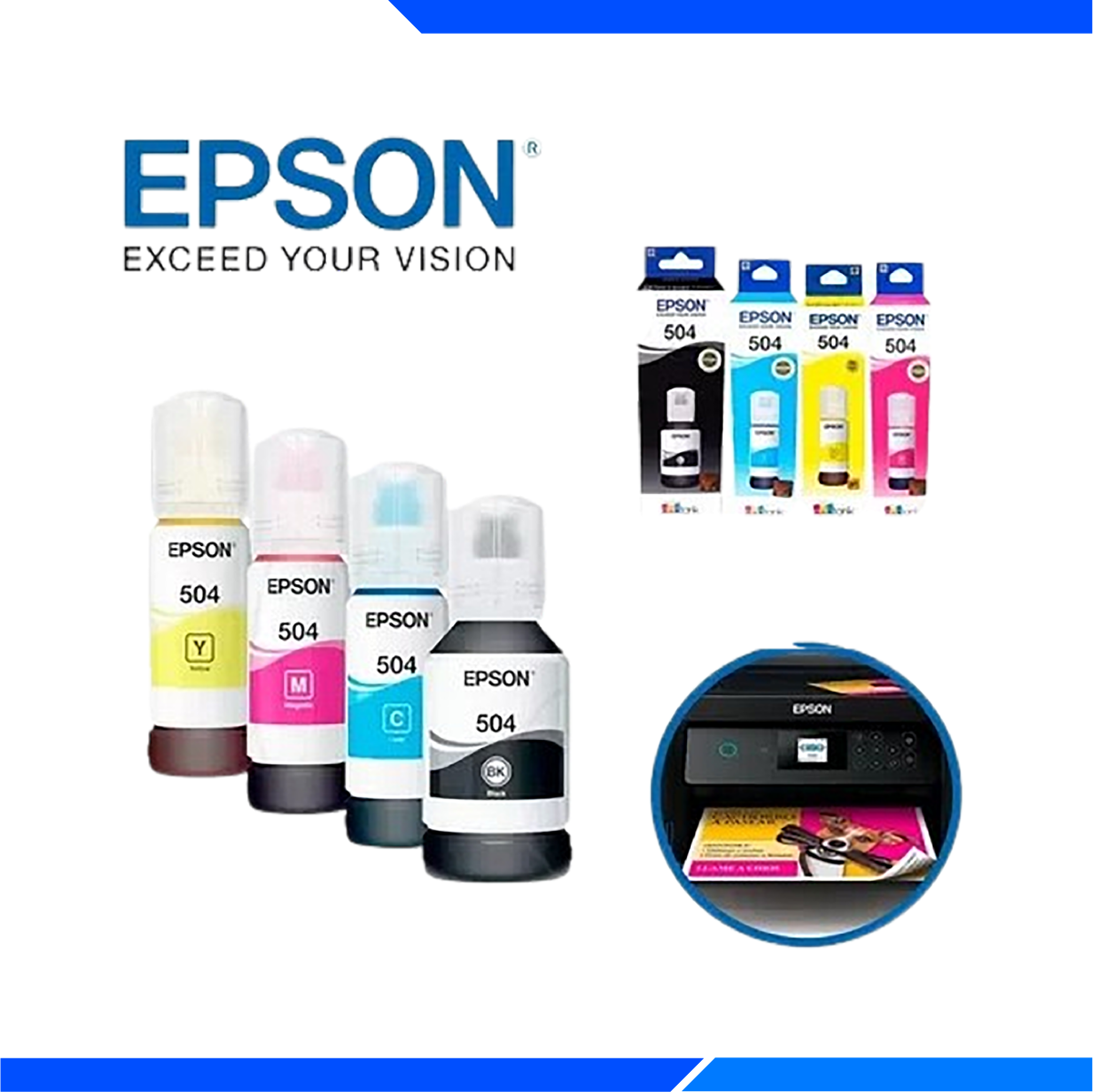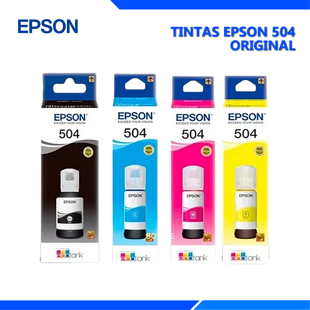 Mantén el rendimiento de tu impresora Epson EcoTank al máximo con el Kit de Tinta Original Epson T504. Especialmente formulado para modelos como L6171, L4150 y L4160, este conjunto de tintas ofrece colores vibrantes y duraderos en cada impresión. Diseñado con la tecnología de tinta líquida de Epson, proporciona un flujo constante y preciso que asegura la máxima calidad de impresión y prolonga la vida útil de los cabezales de impresión. Además, su sistema de recarga fácil y sin derrames hace que el proceso sea rápido y limpio. Al utilizar tinta original Epson, proteges tu impresora y mantienes la garantía del fabricante, optimizando el rendimiento con cada recarga.